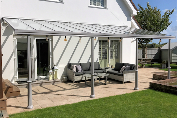 The Simplicity 6 is a stylish aluminium veranda canopy that is covered with 6mm toughened clear glass as standard. As an alternative, the Simplicity 6 can also be covered with either 6mm toughened self-cleaning glass or can be available in a range of tints.