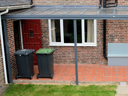 The posts measure 70mm x 70mm and are made from aluminium box section to match the aluminium roof frame of the 6 & 16 carports and verandas. To match the roof frame, they are also supplied in white as standard and are available in any RAL Colour at an additional cost.